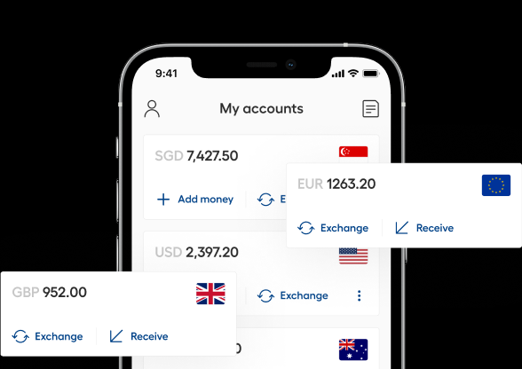 Get paid easily in USD, AUD, SGD, HKD, JPY, NZD, EUR, and GBP without the hefty costs or multiple bank accounts. ​